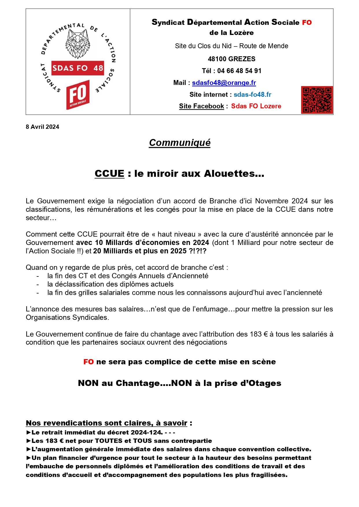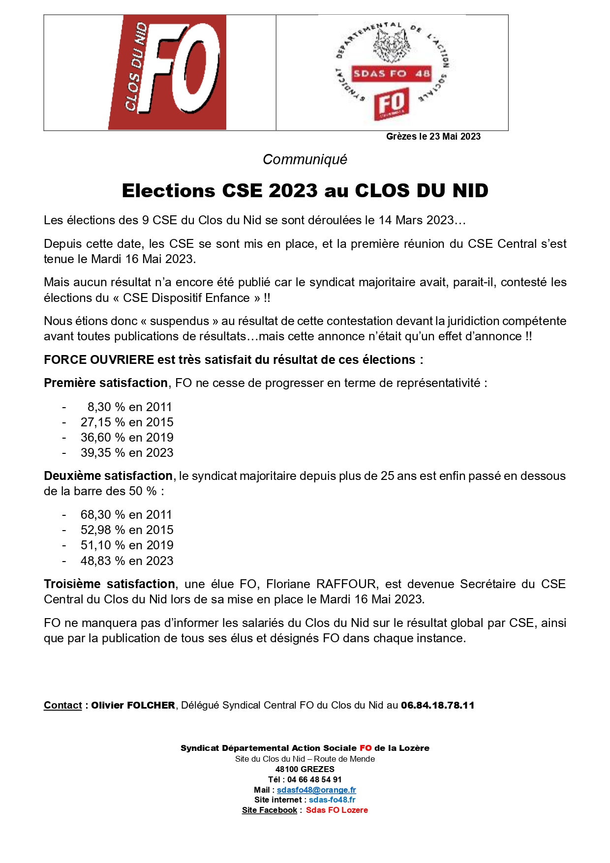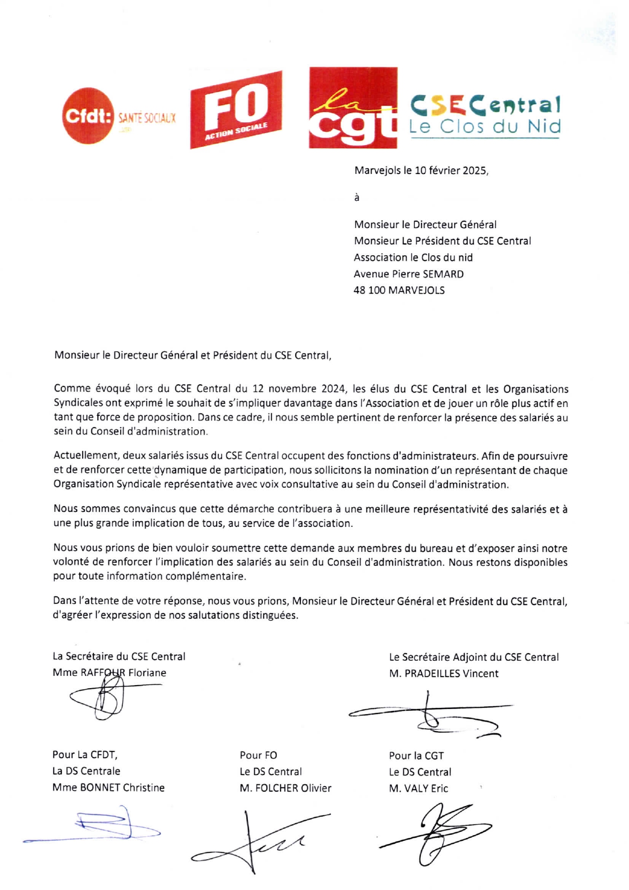 Courrier intersyndical CSE central pour CA du Clos du Nid